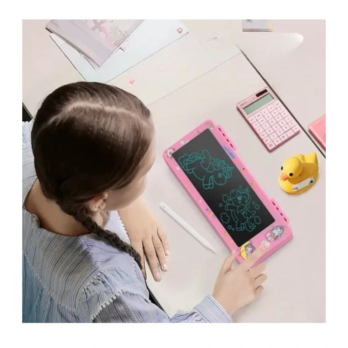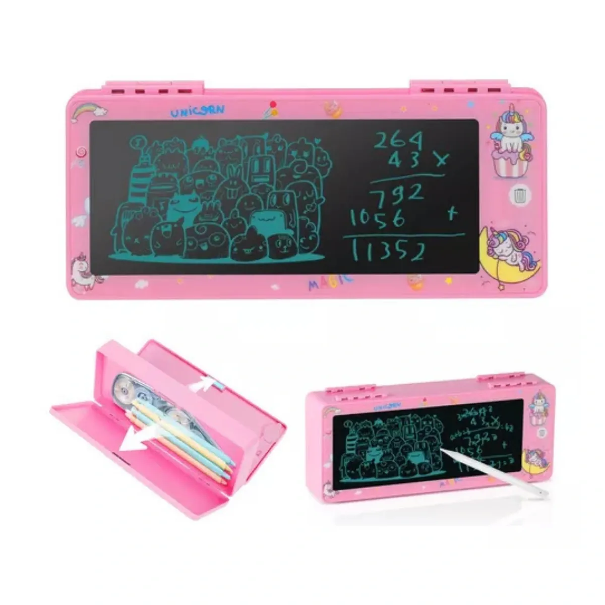 Esta cartuchera es ideal para que los niños organicen sus útiles y exploren su creatividad. Tiene una superficie tipo pizarra mágica para escribir y borrar, y compartimentos organizados para mantener todo en orden.