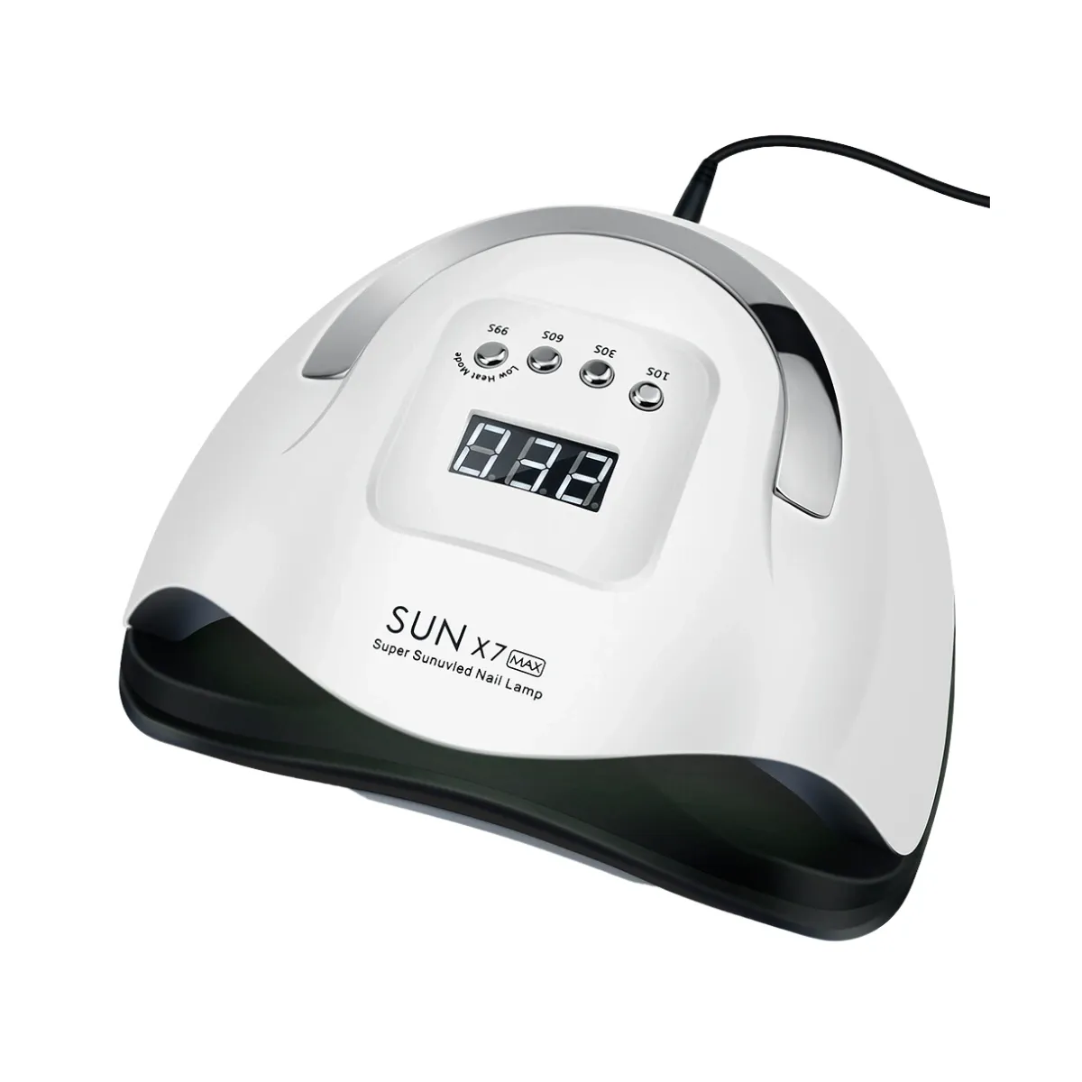 Este dispositivo cuenta con una fuente de luz dual UV/LED. Ofrece opciones de sincronización de 10, 30, 60 y 99 segundos. La potencia del producto es de 220 vatios y tiene un total de 57 cuentas de lámpara.