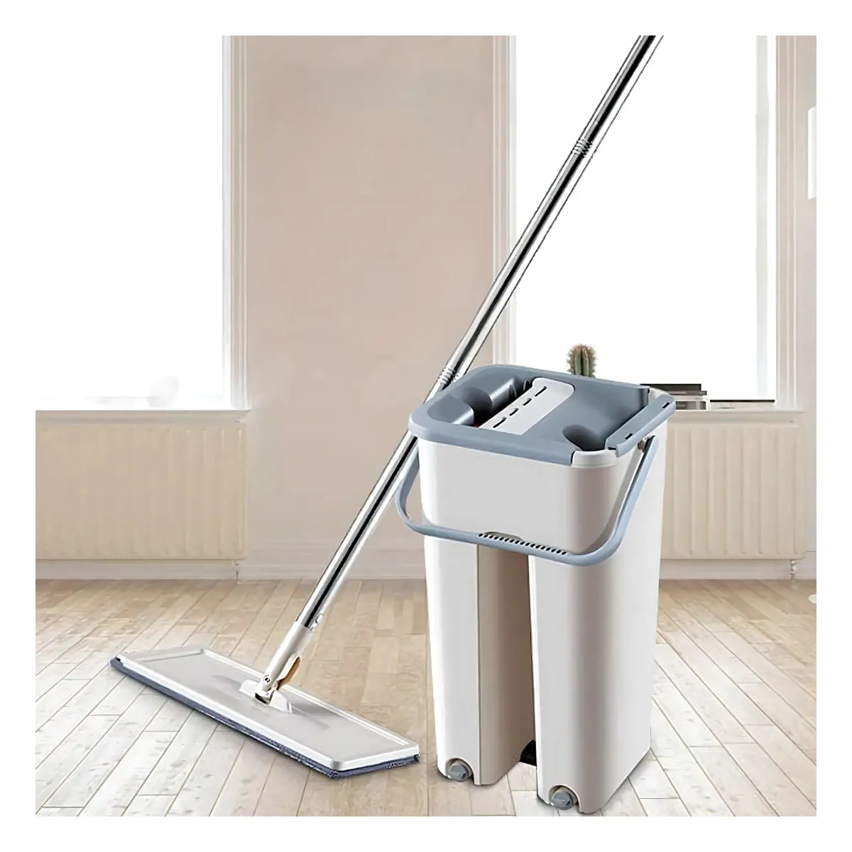 Limpia tu hogar fácilmente con este práctico diseño. El balde tiene dos compartimientos de 4 litros para separar el agua limpia de la sucia. Incluye una mopa de microfibra y un palo de 1.1 metros para llegar a todos los rincones.