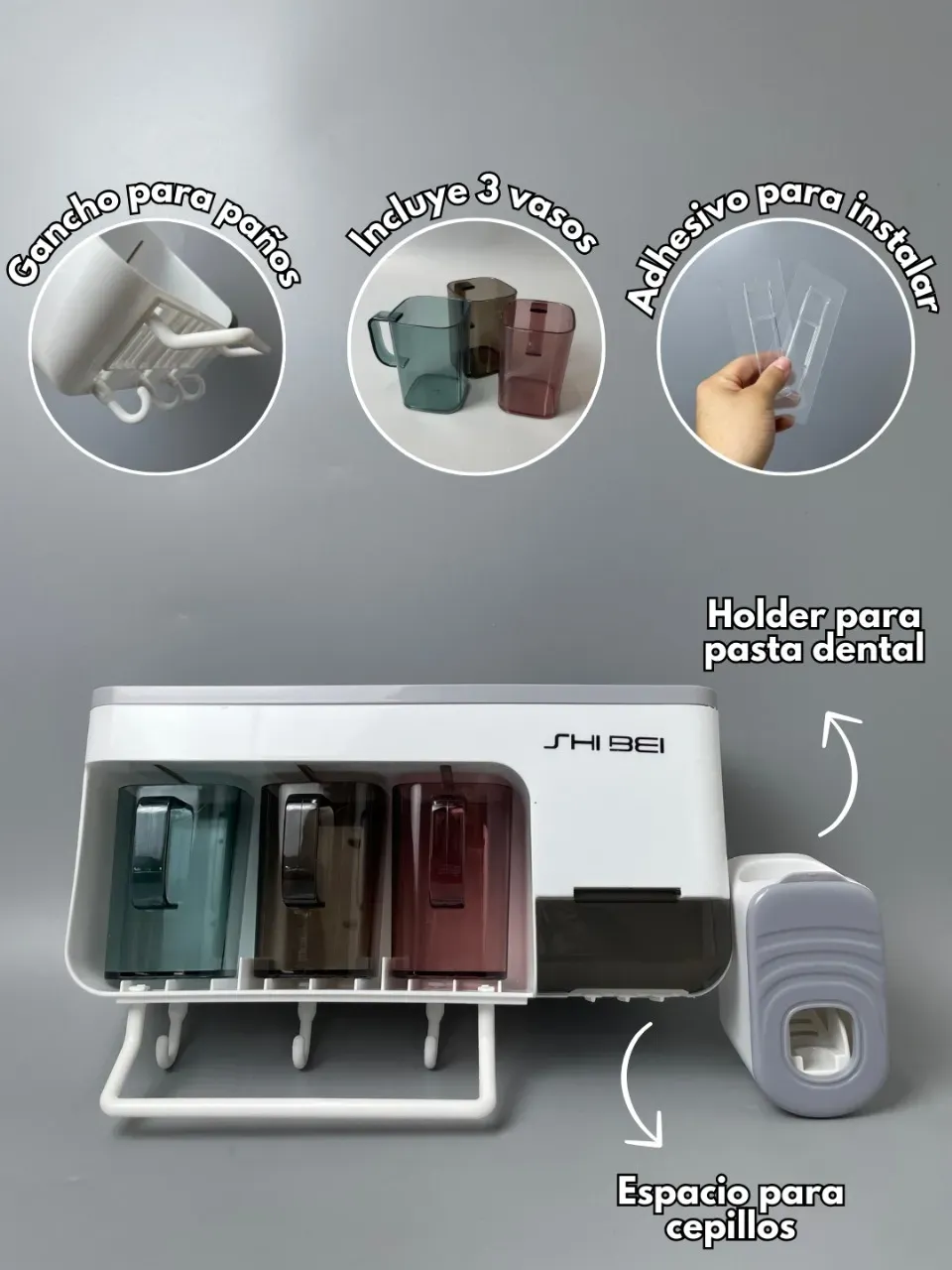 👏 Cuenta con 3 vasos que se colocan de forma segura dentro del organizador y se mantienen secos.